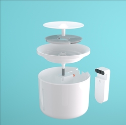 Cuencos para mascotas de patrón sólido de estilo moderno, Alimentador automático inteligente para gatos, perros, disco de seis rejillas, recordatorio de música, Plástico