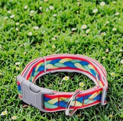 Collar de entrenamiento de cinta de poliéster con estampado de arcoíris al por mayor con cuerda de tracción acolchada para perros grandes suministros para mascotas